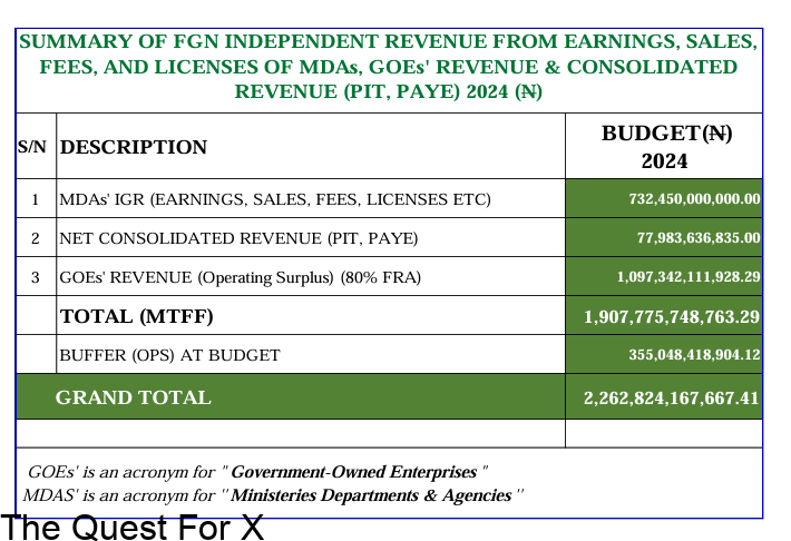 VERIFICATION: To verify the independent revenue projection of the federal government in Q1 2024, EQToday obtained the document containing the total projected revenue for ministries, departments and agencies (MDAs) and government-owned enterprises (GOEs).