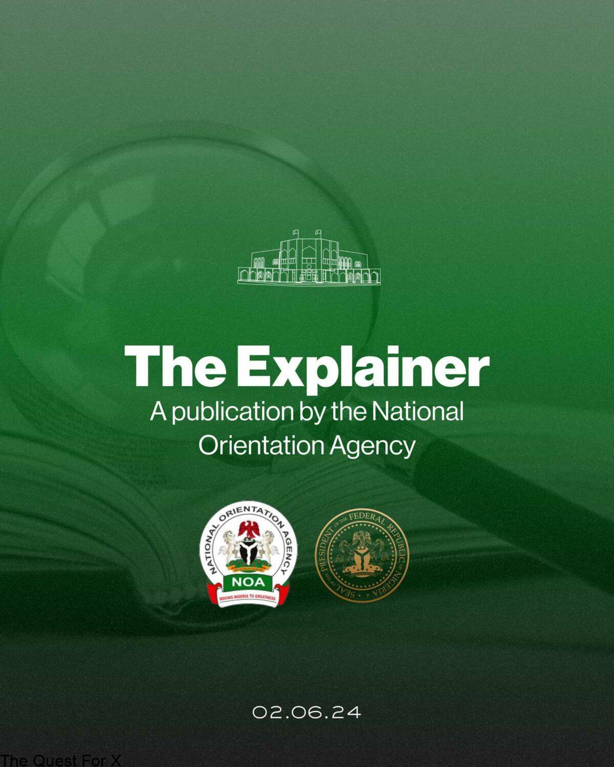 The Explainer – A publication by the National Orientation Agency – Vol 1 No 11. pic.twitter.com/u1c0AhCNfA— Presidency Nigeria (@NGRPresident) June 2, 2024