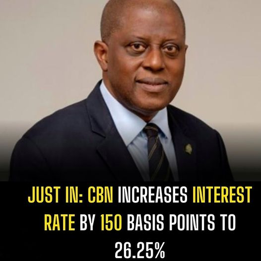 The Monetary Policy Committee (MPC) of the Central Bank of Nigeria has raised the interest rate by 150 basis points, from 24.75 percent to 26.25 percent.