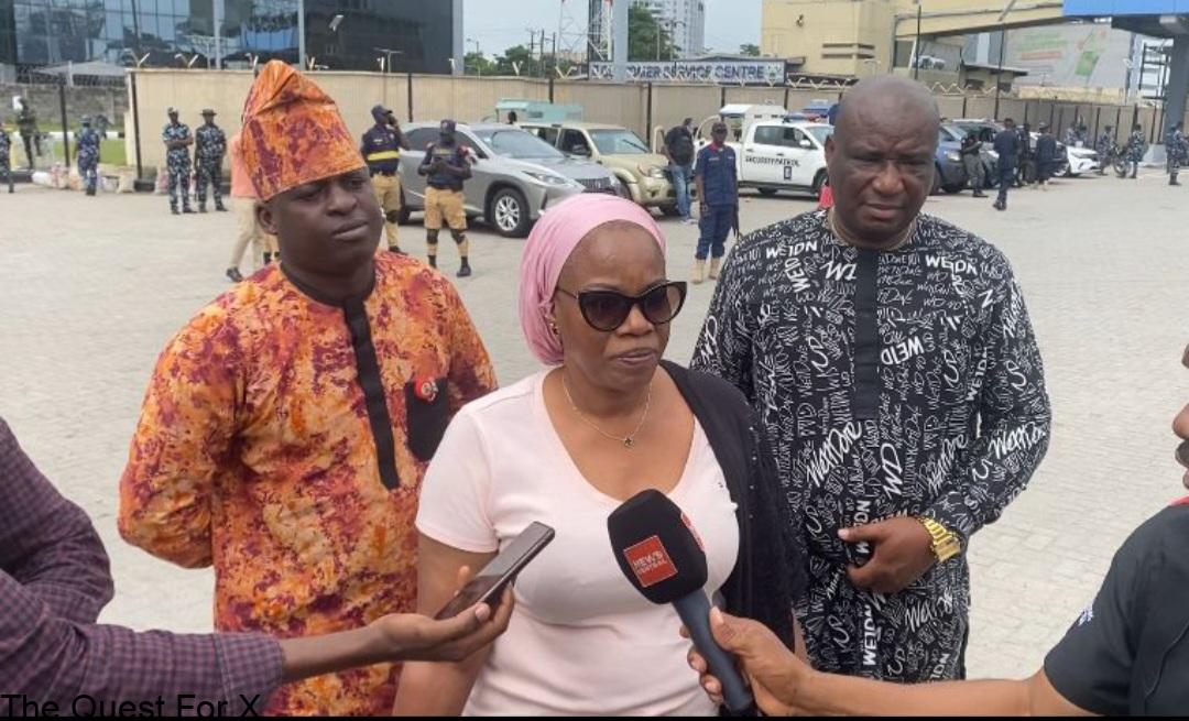 The aide stood by her as she addressed the press, urging protesters to hand President Bola Tinubu, arguing that he had put in place some “policy implementations”.