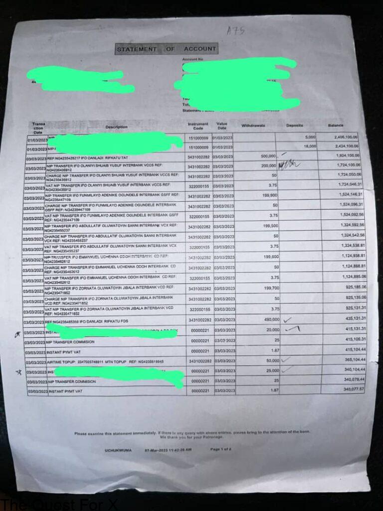 Statement of Account Oruku Obtained on the Day the Fraud Was Perpetrated